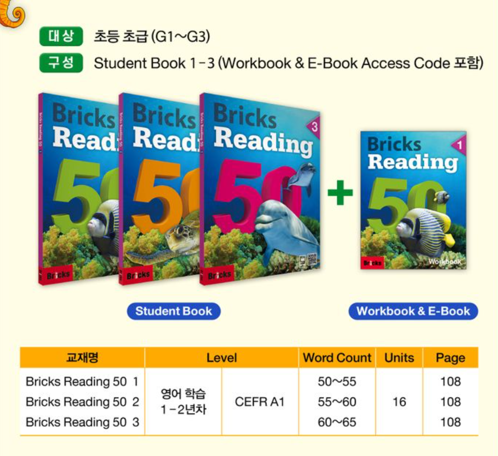 브릭스 리딩은 리딩 기초단계 프로그램으로 30,50,80,100의 경우는 영어학습 1-2년차 학습자들을 대상으로 하고 있습니다.본격적인 리딩 학습을 시작하기에 앞서기초적인 학습이 필요한 초보 학습